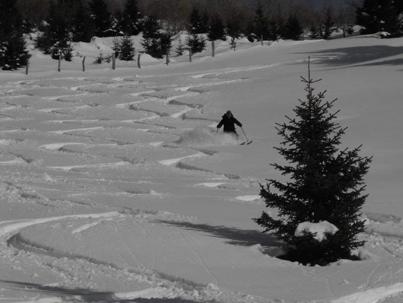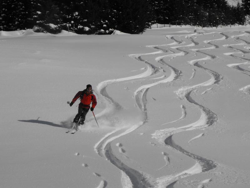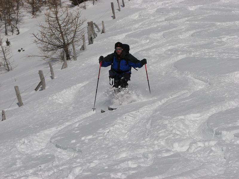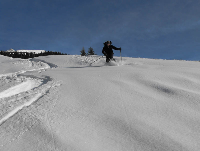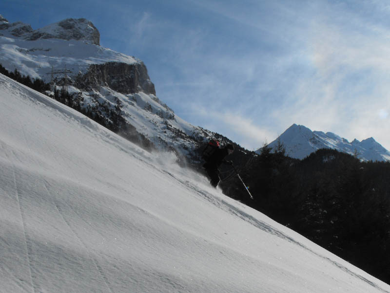 Nach dem Rücken namen wir noch die direkte Schneisse mit, und so folgte Hang auf Hang bis zur Kneippe