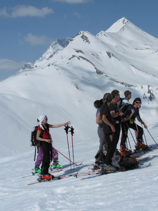 Nach dem ersten steileren Hang legte wir an der Alp Belvair erstmal ein größere Pause ein, am Hang danach staute sich mal für 30 min die Hitze, der Gipfel schien noch weit, so dass die Motivation bei einigen kurzzeitig einen kleinen Durchhänger bekam. Mit frischem Wind war der aber gleich überwunden, der steilere Hang unterm Gipfelhang wurde problemlos bewältigt.