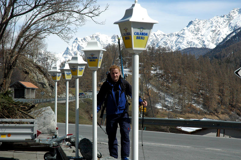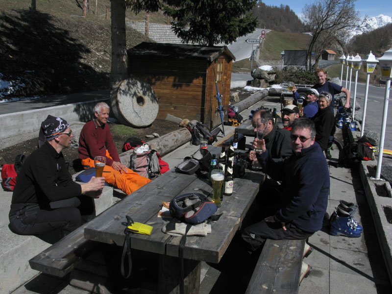 Zieleinlauf in Giarsun nach 5 min Skitragen vom Inn rauf- der Abholservice soll sich erst mal Zeit lassen