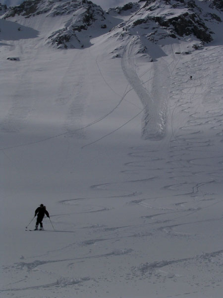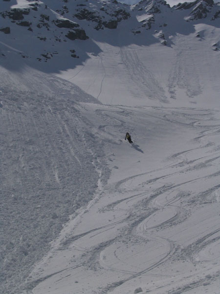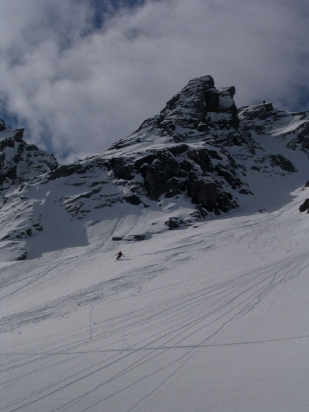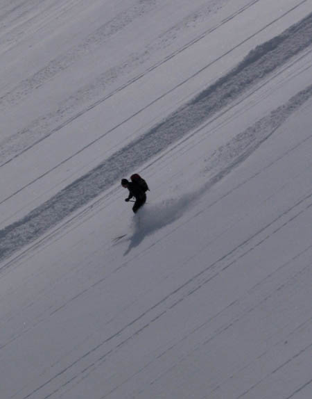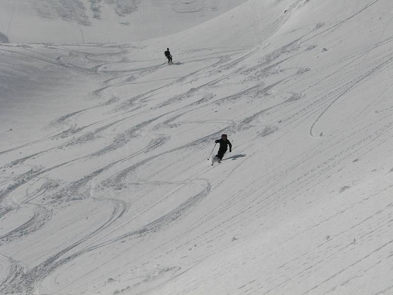 vom flachen Gipfelplateau eigentlich eine Traumabfahrt hintenrunter, leider gab es da einen Umstand, der das Vergnügen etwas dämpfte
