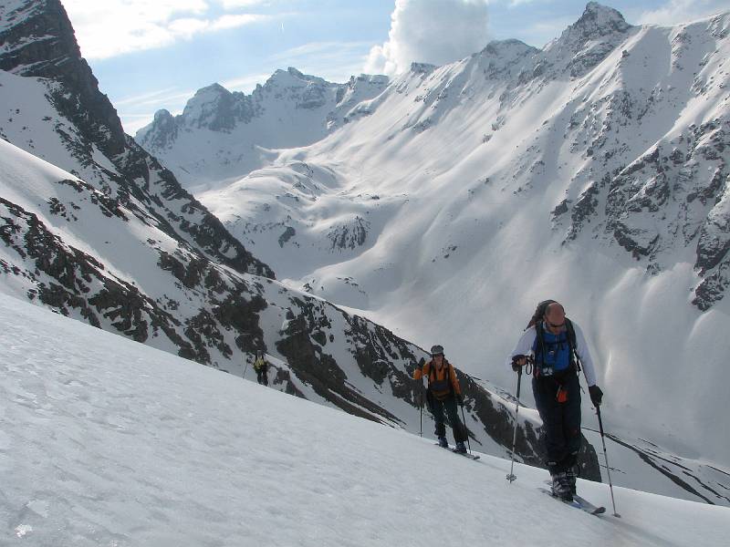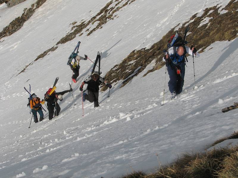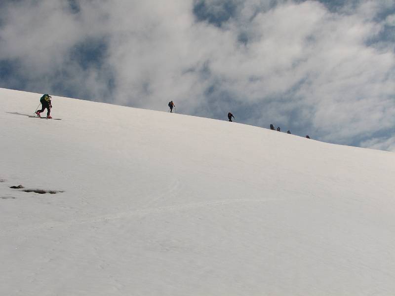 100 Meter im Aufstieg waren zu steil für Ski und zudem von steineschmeise nden Gmesen stark bedroht.