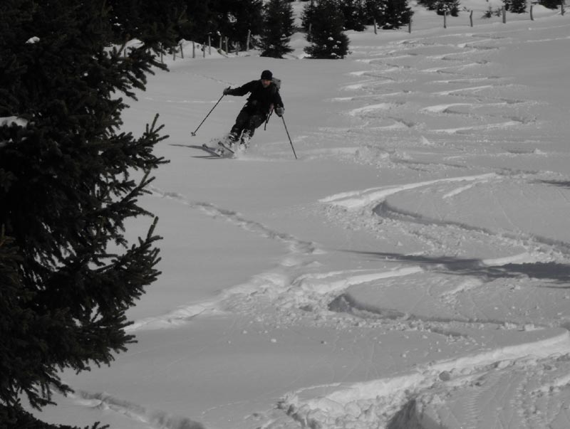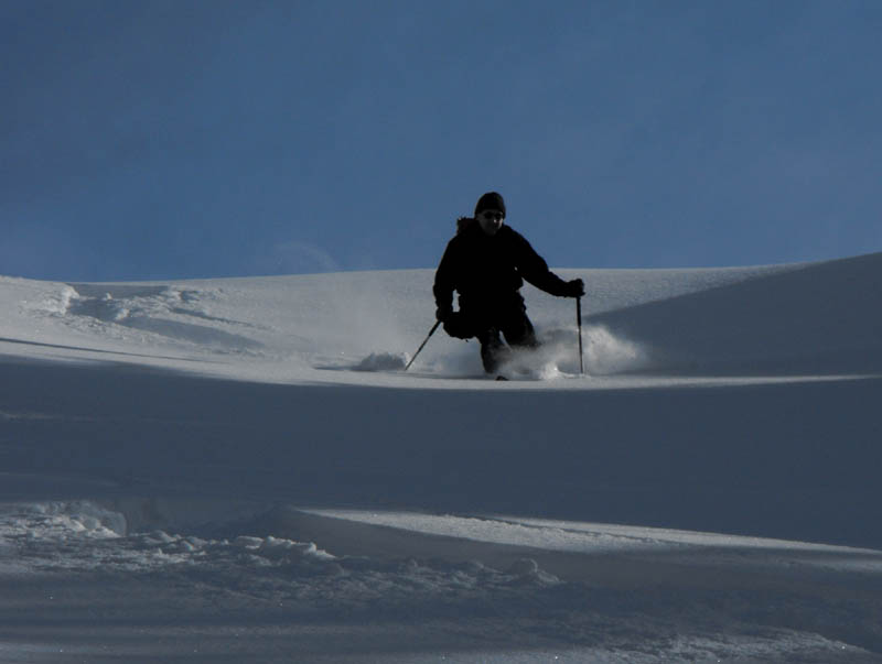 Nach dem Rücken namen wir noch die direkte Schneisse mit, und so folgte Hang auf Hang bis zur Kneippe