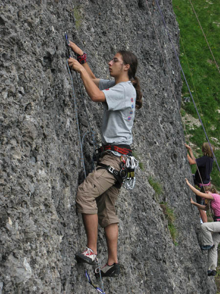 Der Sektor Felswurm ist noch schöner wie drüben an der Teufelskralle. Dazu gibt es ein paar Touren, die wirklich in kurzen Abständen abgesichert sind, so dass diese sich auch wirklich für Vorstiegsversuche anbietet. Gleichzeitig ist es aber doch einigermaßen steil, also richtiges Klettern. und kein Plattenrutschen. Diesmal war als Preis nicht der Rollercoaster ausgelobt (siehe Jahr zuvor) , sondern es ging diesmal um Eiskugeln
