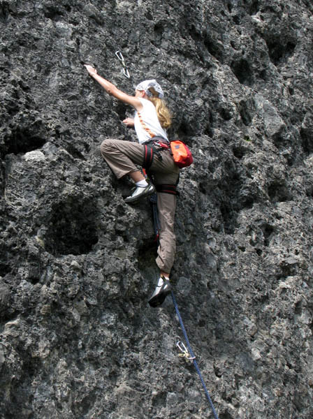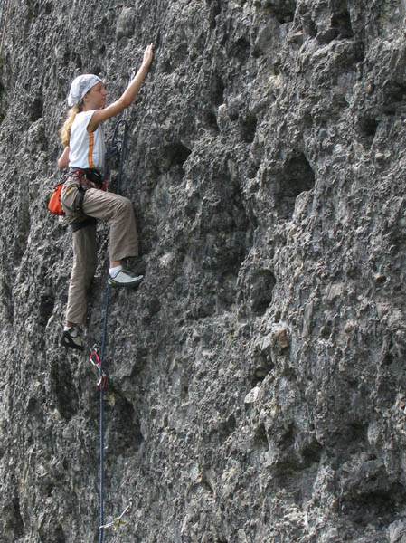 Der Felswurm hat hier wirklich ganze arbeit geleistet und sehr viele Löcher gebohrt, in denen sich die Kletterer nun wunderbar festhalten können.