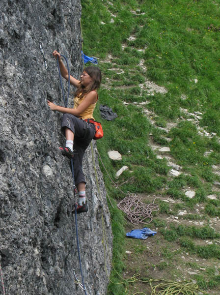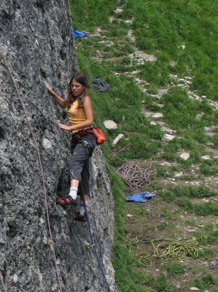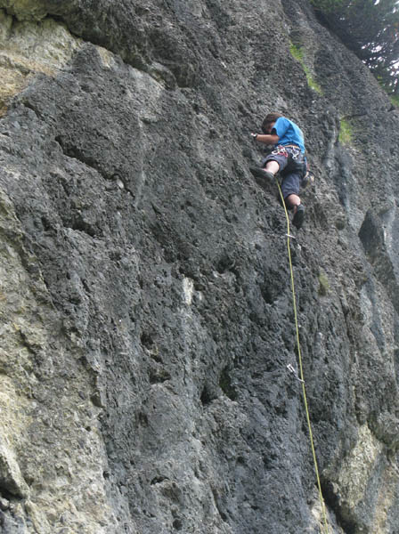 Der Sektor Felswurm ist noch schöner wie drüben an der Teufelskralle. Dazu gibt es ein paar Touren, die wirklich in kurzen Abständen abgesichert sind, so dass diese sich auch wirklich für Vorstiegsversuche anbietet. Gleichzeitig ist es aber doch einigermaßen steil, also richtiges Klettern und kein Plattenrutschen. Diesmal war als Preis nicht der Rollercoaster ausgelobt (siehe Jahr zuvor) , sondern es ging diesmal um Eiskugeln