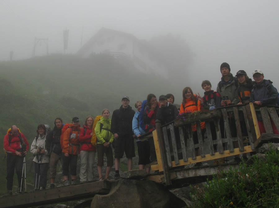 Leider hielt sich am nächsten Morgen das Wetter nicht an die vereinbarte, kurzfristige Verbesserung, sondern es nieselte immer wieder und alles steckte in dicken Nebelschwaden. So machten wir schhließlich um 11 Ohr Einen auf Aufbruch, packten unsere sieben Sachen und watschelten durch den Nebel zur Latschenhütte und dann zur Obermarkter Alm, wo die meisten auf den Rollercoaster umstiegen