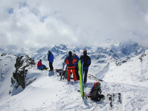 Schnee wird aber tragfähiger und der Hang löst sich oben gut auf, dann kommt auch mehr und mehr die Sonne raus und wir sammeln wieder, bevor es auf das Plateau hinausgeht.
