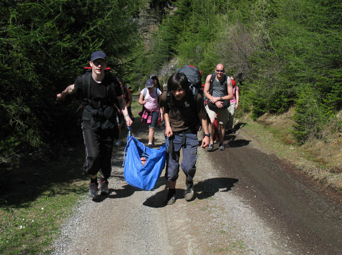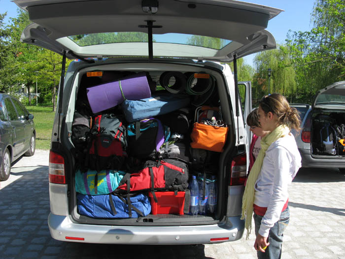 Mitte Mai, Pfingstmontag: wir starten wir zum Kletterzeltlager ins Ötztal. Wetterprognose ist optimal, aber es drohen relativ kühle Abende. Dementsprechend ist unser Leihbus und Christophs Auto neben den 10 Kids mit jeder Menge Gepäck vollgequetscht.
