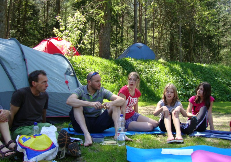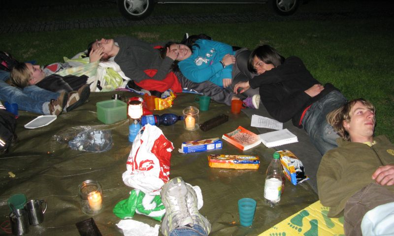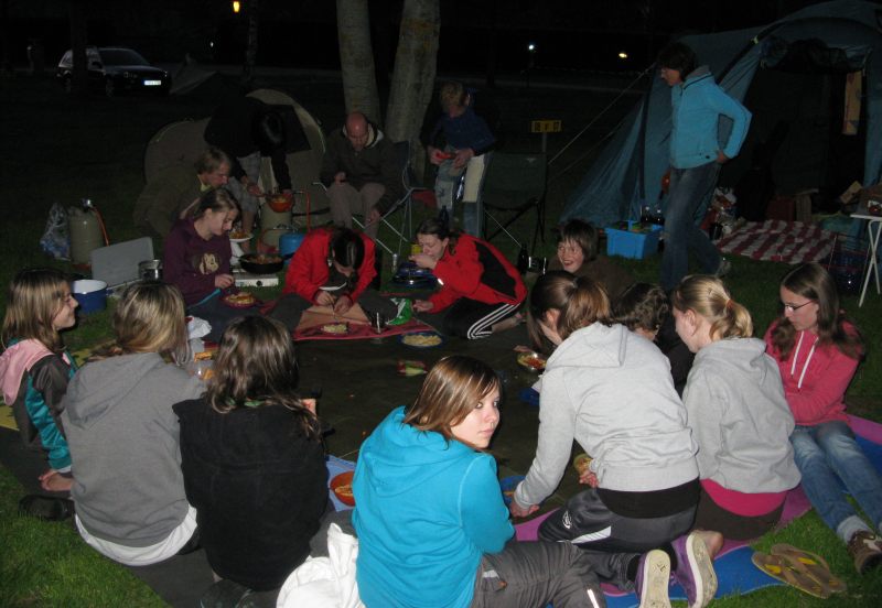 weiter unten:Nudelgericht, Gitarrenklänge ums Pseudo - Lagerfeuer, bequem liegen ohne Sofa erfordert Gemeinschaftssinn