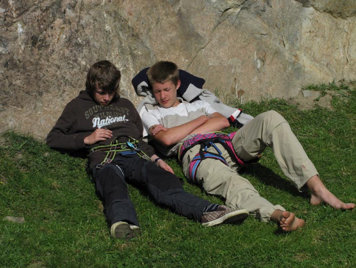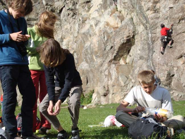Leider gab es dann , bei einer gänzlich unalpinistischen Betätigung auf der topfebenen Wiese, das erwähnte Missgeschick: Die Katze hat das aber mit Hilfe der guten Betreuung durch Julia sehr gut verarbeitet, und es geht ihr und ihrem Arm schon wieder besser.