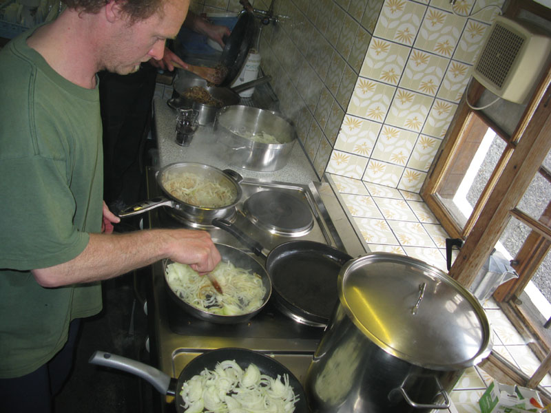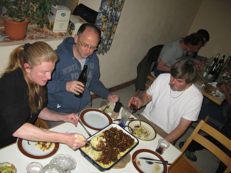 Durch den Vorfall bedingt war natürlich der Abend nicht so, wie wir uns das vorgestellt hatten. Alle Teilnehmer haben aber das von mir allein fabrizierte Abendessen im wesentlichen unbeschadet überstanden. Bis dann unser Krankenhaus Trupp wieder eingetroffen war, mussten wir uns die Zeit vertreiben