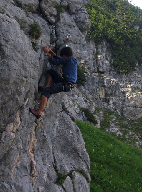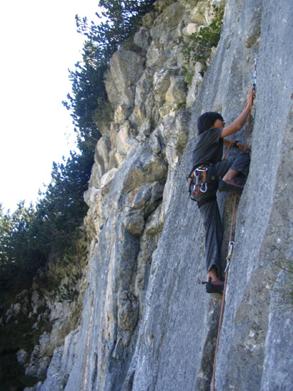 Kommentare zu Touren: Nummerierung wie im link unten: Nr1 6- etwas seltsame Blöcke Nr2 7+/8- , nur anfang schwer, in 2. Haken Schlinge eingebunden (war nicht zu clippen) Nr3 um 8+, (Panico: 9), harter Anfang an seichten LöchernNr 3a ? (Panico 8) , sieht deutlich schwerer aus Nr4 ? (Panico 9-) , Riss zu glatter Wandstelle Nr 5 6-, griffige Rampen, großzügig, längere Express Nr 6 3+ Karrenplatte mit Graspolstern links Nr 7 4+ Karrenplatte , Einstieg an Kante, oben links der Kante Nr 7a 5/ 5+ Einstieg wie 8, dann links raus, oben an der Kante Nr. 8 4+, Verschneidung mit breitem Riss Nr 9 5 plattige Passage, schön Nr10 6- plattige Passage (längerer Abstand mit Schlinge oder kl Friend entschärfbar) Nr 11 6+/7- athletischer Wulst (Achtung oberhalb 3 H rechts hohler Block), dann etwas weiter gesichert in die schöne Platte Nr 12 6-, rauher Piazriss, zuerst ein paar Meter auf der unteren Platte bleiben Nr 13, 5, Platte zu Piazriss Nr 14 6/6+ Platteneinstieg, oben schöner zu 13