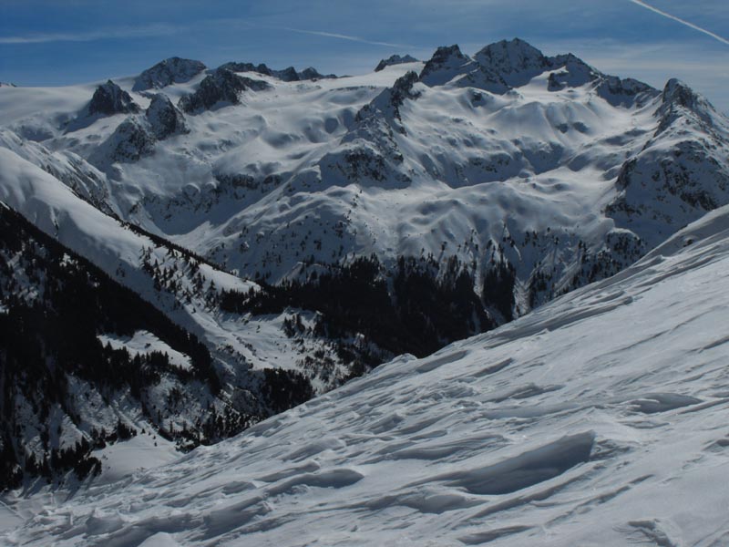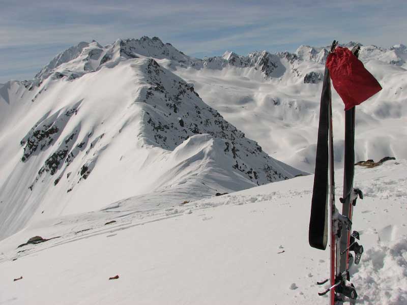 Einlauf an der Gipfelkalotte- Blick hinüber zum Oberalpstock und (unten) zum Piz Gannaretsch (wäre auch noch ein Ziel)