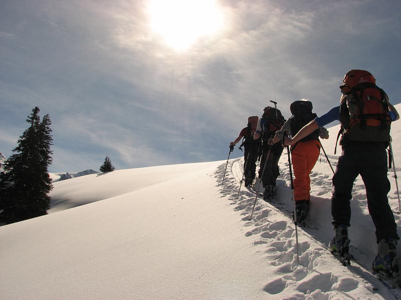 Nach dem Waldstück ein längerer, sanfter Hang und dann verfolgten wir für die nächste Zeit den Rücken, von wo die Aussicht immer besser wurde