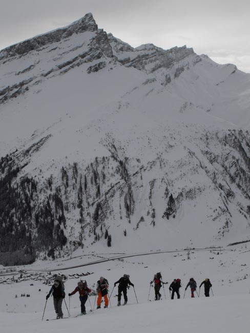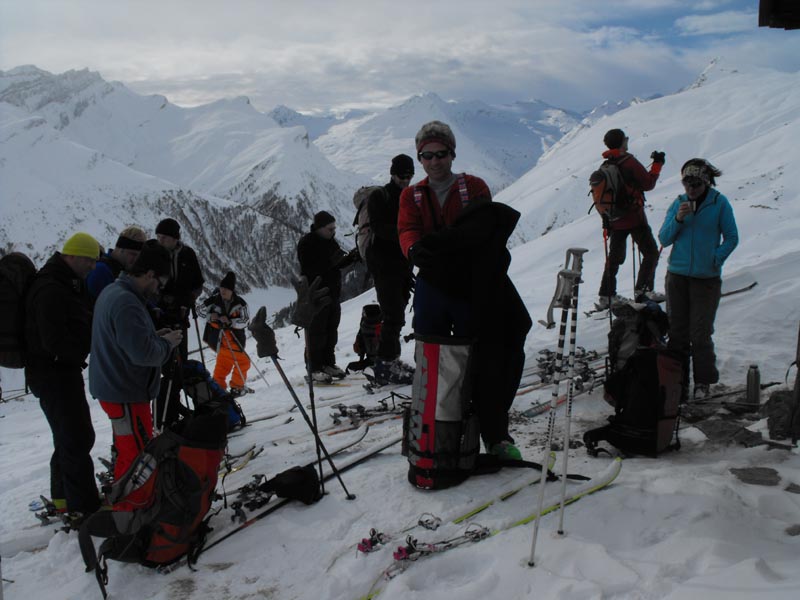 Wieder mal einiges Hin und Her vor der Abfahrt, da Frau Noro einige Opfer forderte, dann waren wir 13 Leute, die wieder mal Richtung Hinterrhein unterwegs waren. In der Vorwoche viel Neuschnee und Wind auf eine in der langen Hochdruckphase aufgebaute Schneeoperfläche ergab einen “strengen” 3er Lawinenlagebericht.