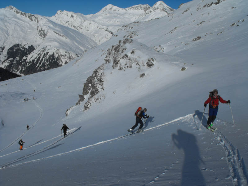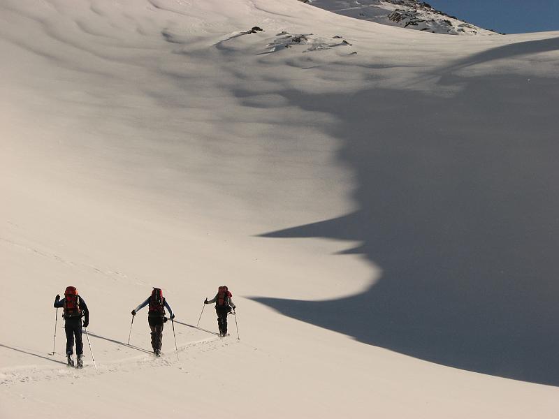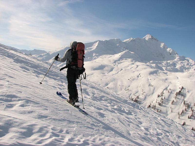 Da der LLb kei Entspannung ausgespukt hatte (was wunder bei der potentiellen Gleitschicht) testen wir den einzigen steileren Hang recht vorsichtig mit Abständen an, allerdings stellt sich dann raus, dass da nicht richtig eingefrachtet wurde