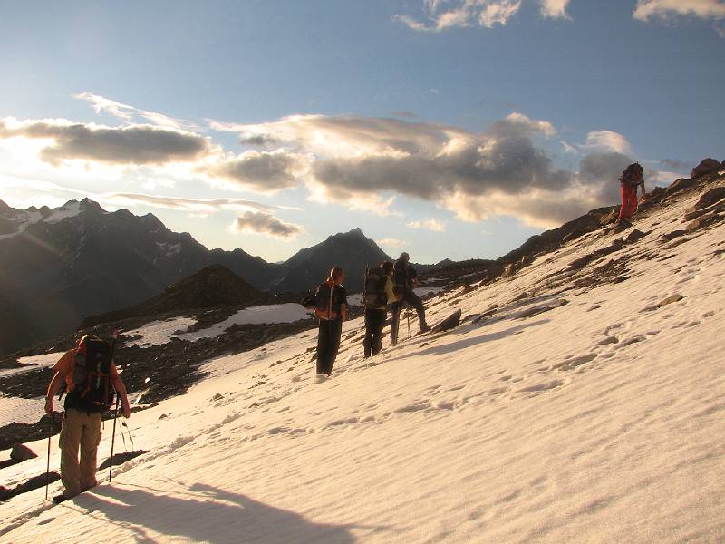 am nächsten morgen Aufbruch und runter und rüber zum Hängegletscher.